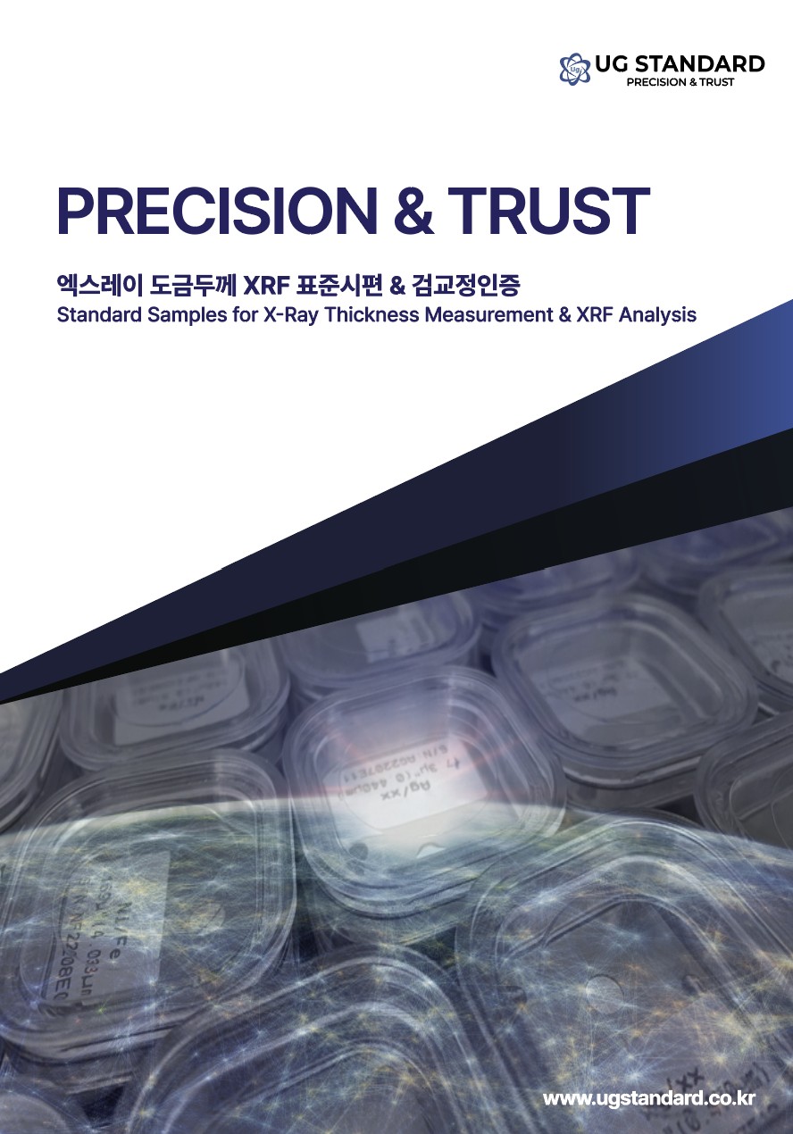 25.10.21. UG STANDARD(유지스탠다드)는 XRF 도금두께 측정기용 표준시편(Standard Sample)의 기술 정보를 보다 체계적으로 제공하기 위해 표준시편 데이터베이스(DB) 를 새롭게 구축하였습니다.