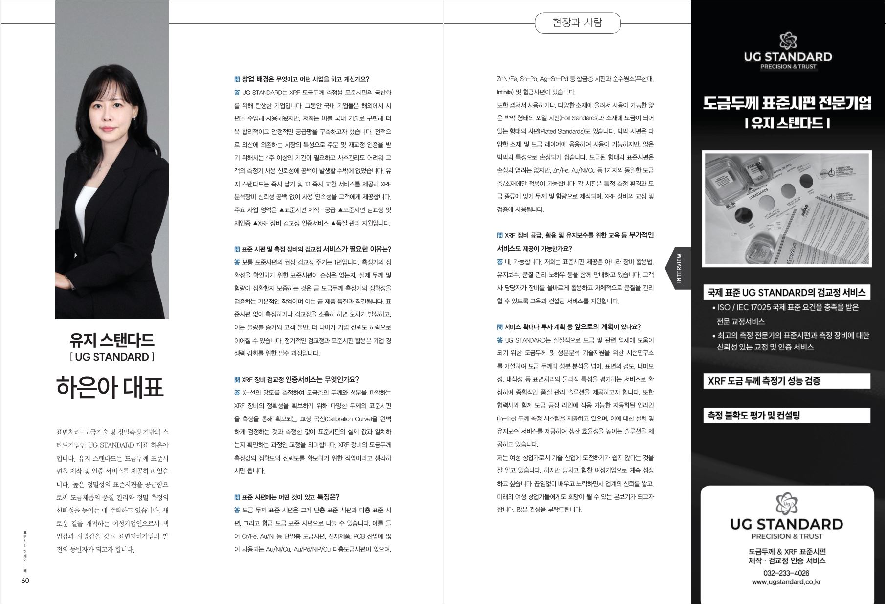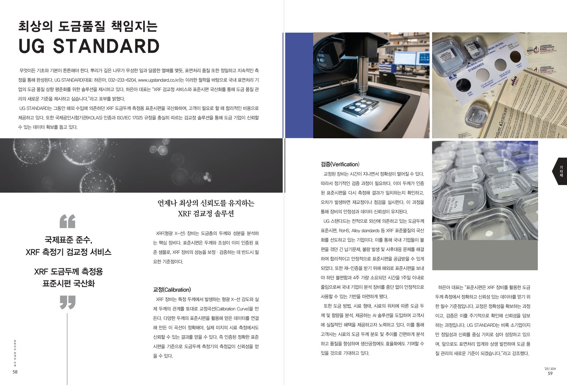 UG STANDARD(유지 스탠다드)가 국내 표면처리 전문 매거진 『표면처리저널』 2025년 10월호에 “현장과 사람” 인터뷰 및 기업 소개 기사로 소개되었습니다.
