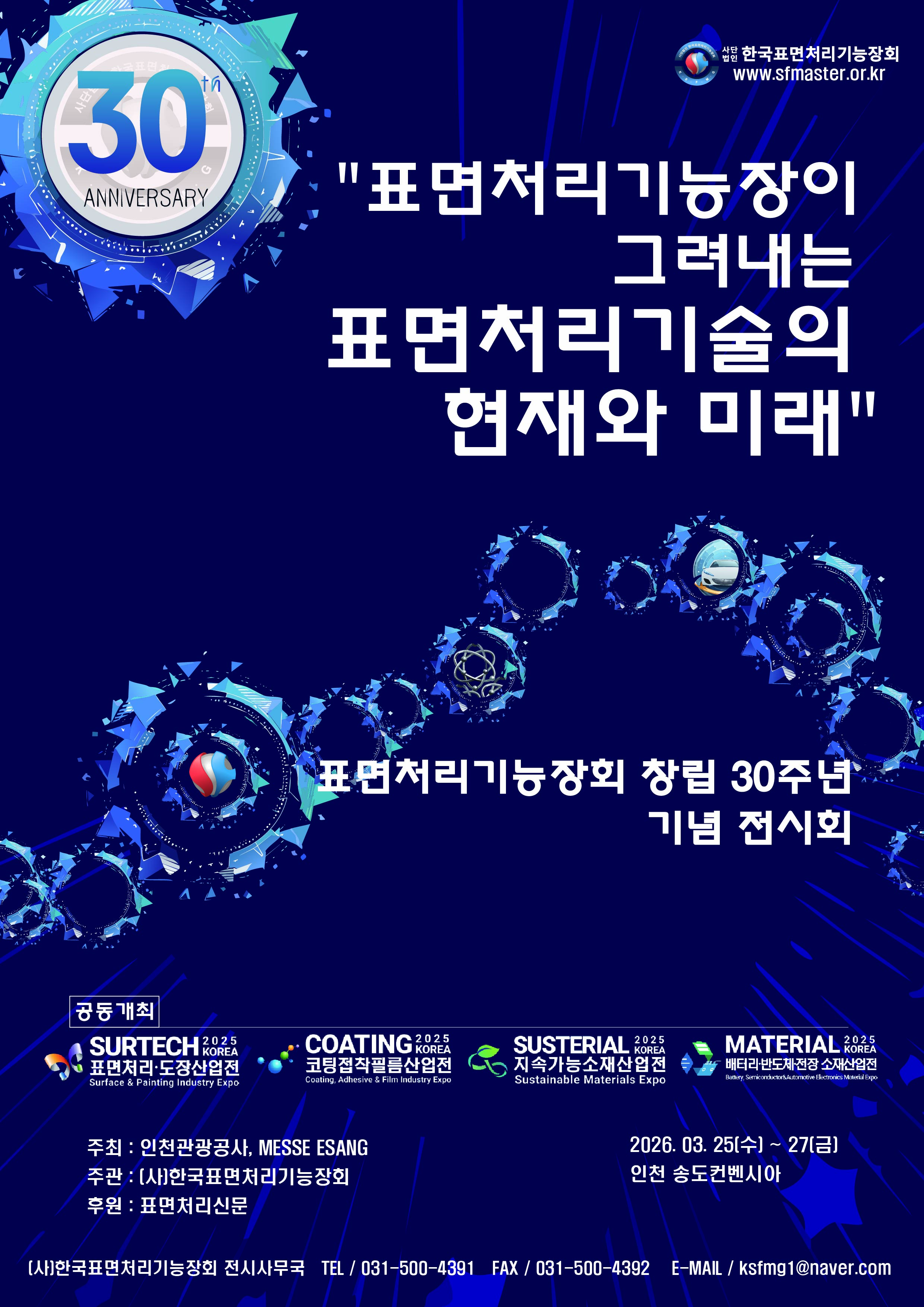 UG STANDARD(대표 하은아)는 2026년 3월, 송도컨벤시아에서 개최되는 (사)한국표면처리기능장회 창립 30주년 기념 전시회에 참가할 예정입니다.